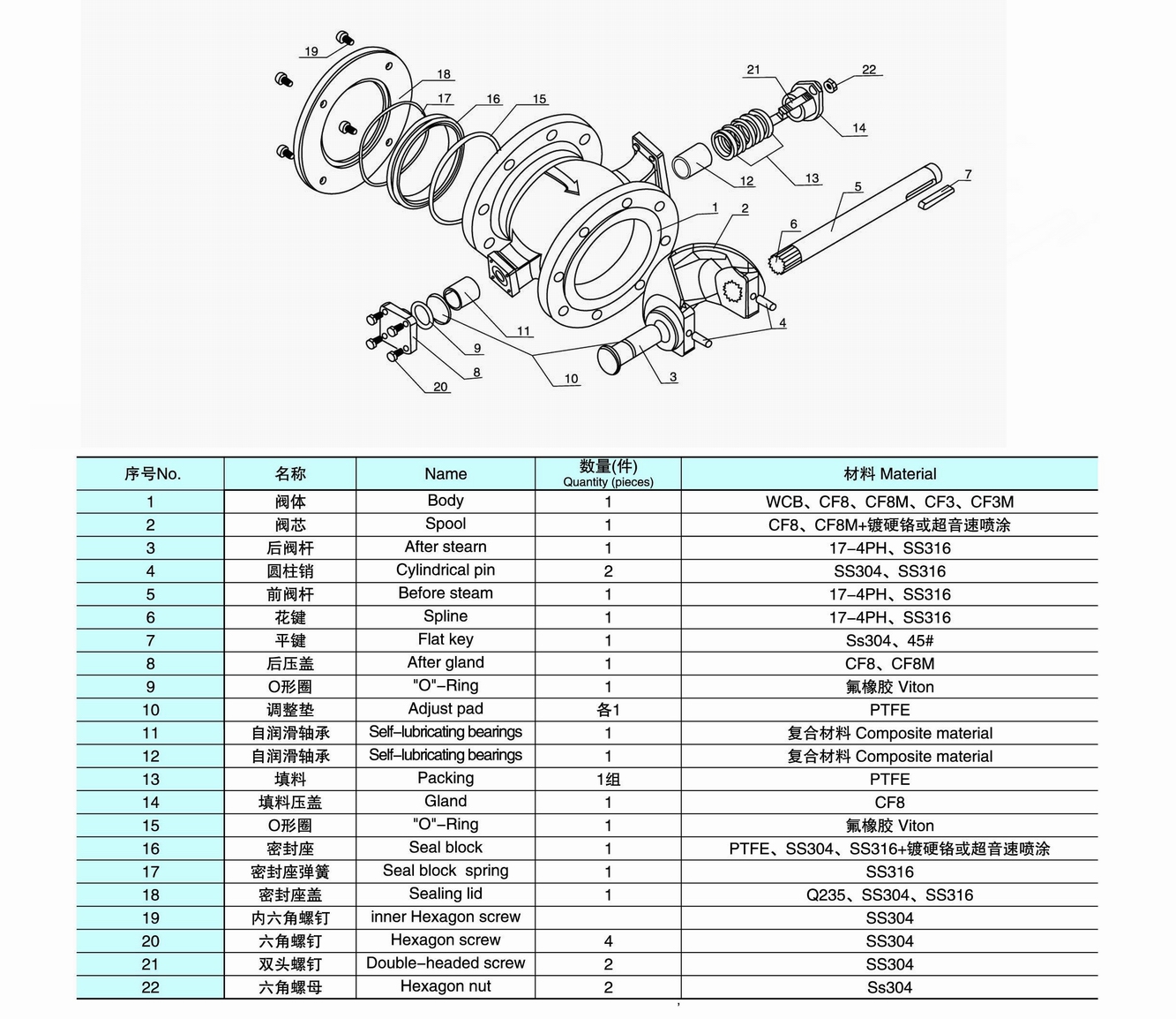 進(jìn)口氣動法蘭V型球閥的零部件材質(zhì)