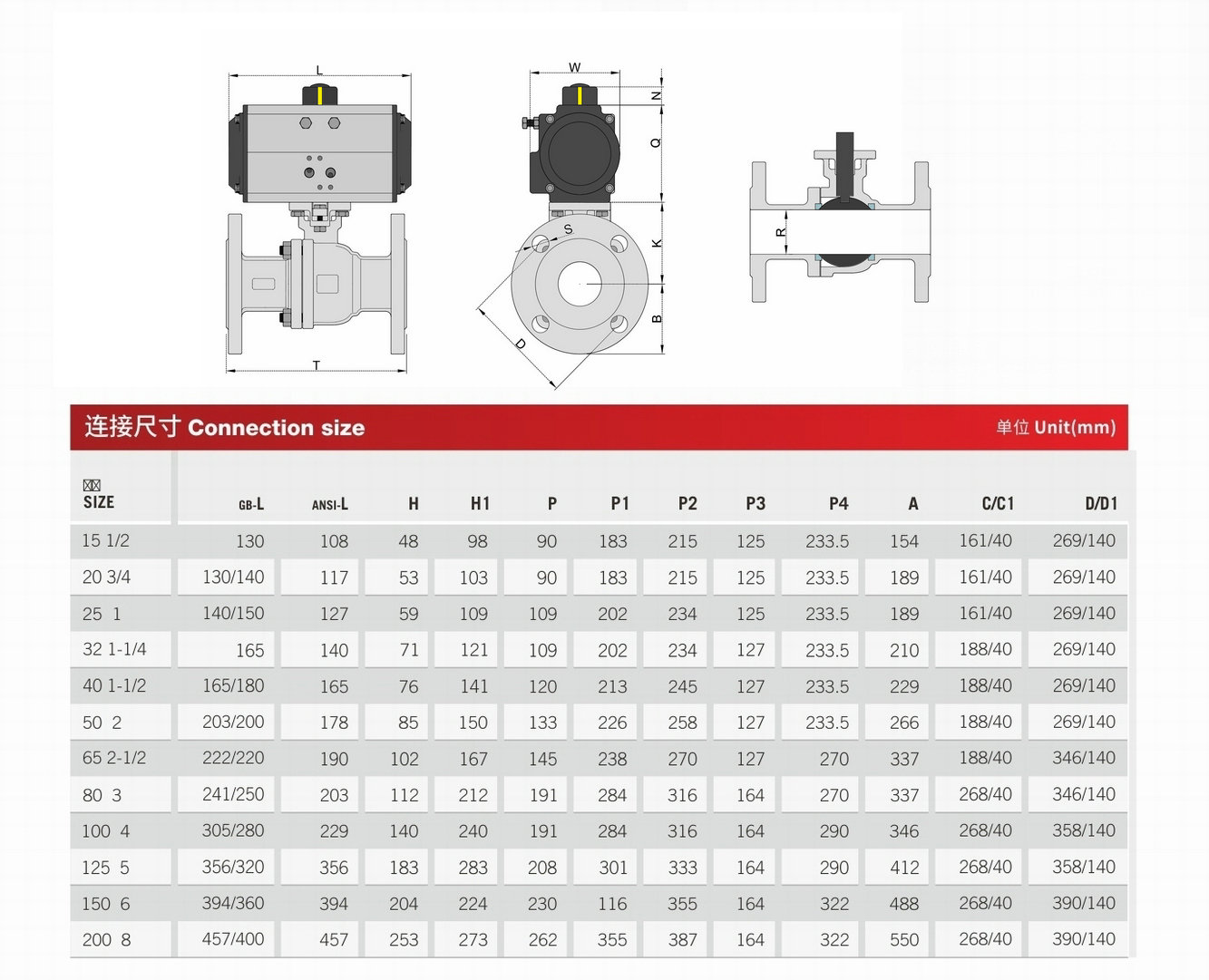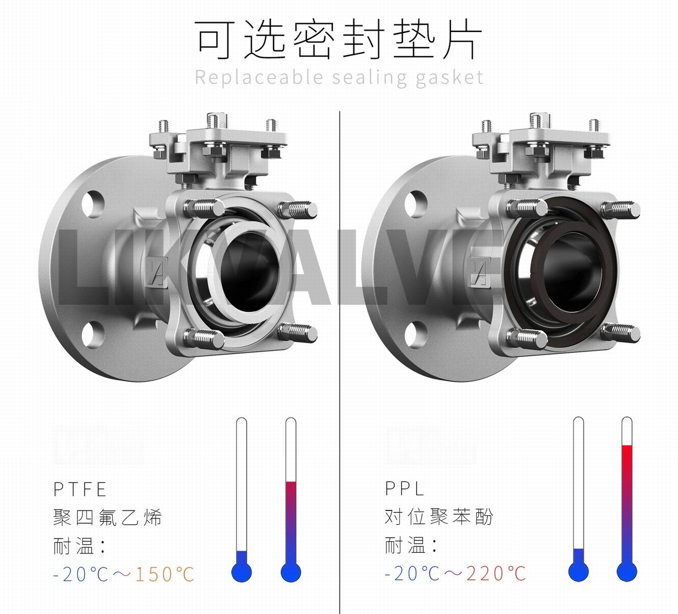 1,根據(jù)工況需要?dú)鈩?dòng)法蘭式球閥可分為軟密封(-30~180℃)和硬密封(-40~450℃)兩種密封結(jié)構(gòu),以便在不同介質(zhì)、不同溫度及不同壓力的場所中合理使用。