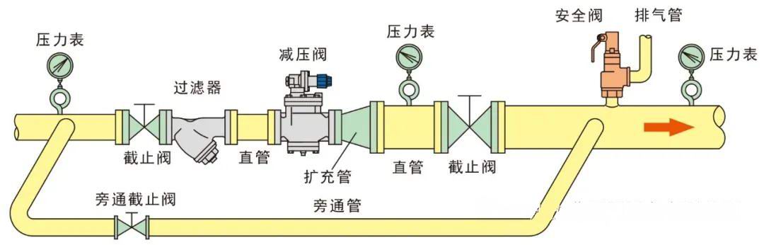 4、如需在減壓閥出口側(cè)安裝自動(dòng)控制閥,需與減壓閥保持一定距離(調(diào)節(jié)型1米以上,開關(guān)型2米以上)。