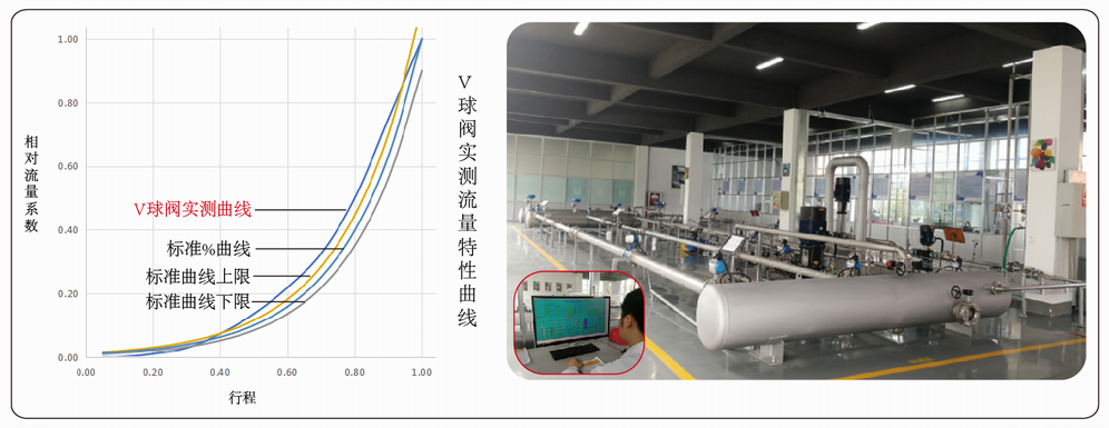 萊克通過不斷改變開口形狀,在實(shí)驗(yàn)室反復(fù)測(cè)試,再修正曲線,讓V球閥的實(shí)測(cè)流量特性曲線接近理想%曲線,從而獲得和調(diào)節(jié)閥一樣的調(diào)節(jié)性能,但是其流通能力比同口徑調(diào)節(jié)閥大30-40%。
